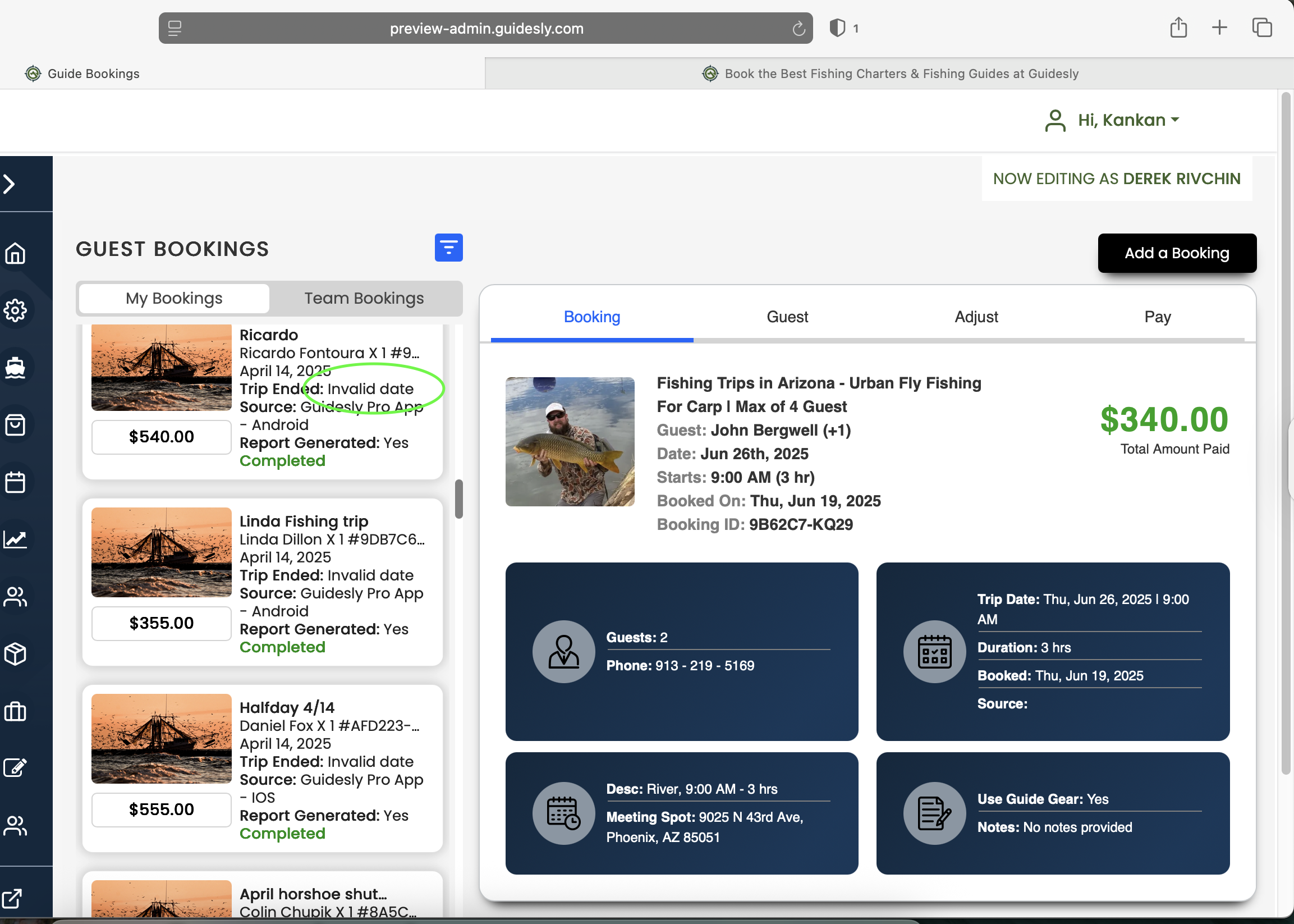 Personal Shared testing for Upcoming and Ongoing tripsFishing